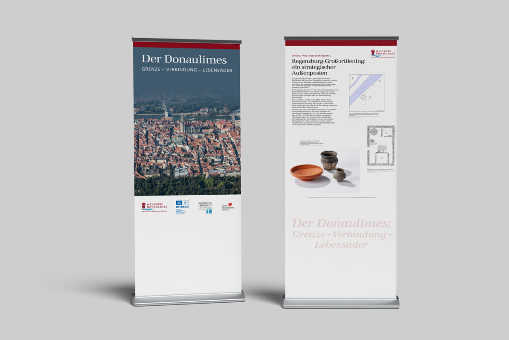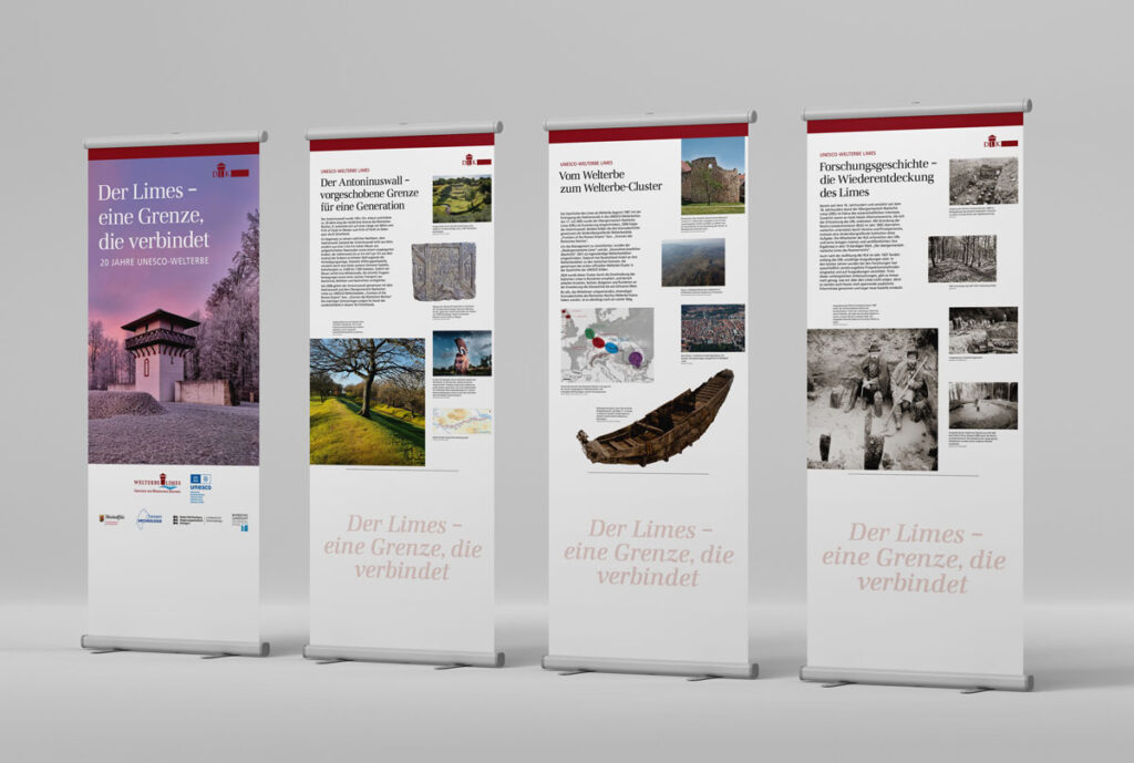 Zum Jubiläumsjahr „20 Jahre Welterbe Limes“ gestaltete h.und.b mehrere Rollup-Ausstellungen, die entlang des Limes in Rheinland-Pfalz, Hessen, Baden-Württemberg und Bayern zu sehen sind.